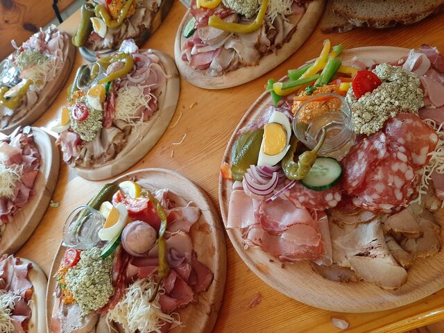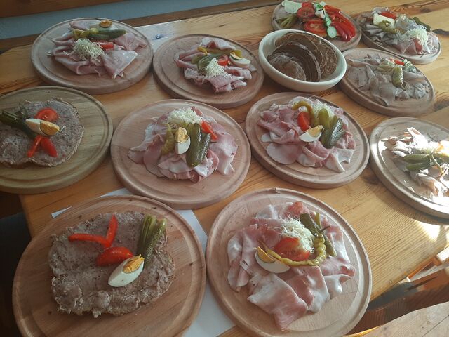 Wir bieten verschiedene Regionale Jausenprodukte mit passenden Getränken. Egal ob Most, selbstgemachte Säfte, Bier oder Kaffee.
