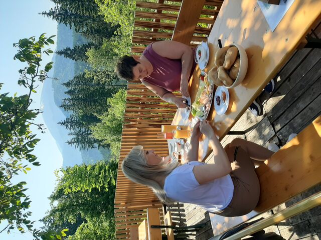 Die herrliche Aussicht und die frische Bergluft schließen das Bergambiente mit Blick auf die Petzen, Topitza und Oistra ab.